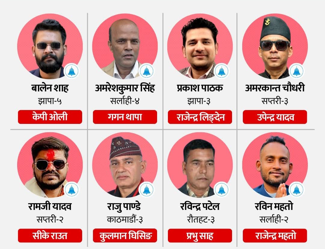 रास्वपा सभापति रवि लामिछाने र नेपाल कम्युनिस्ट पार्टी (नेकपा) संयोजक पुष्पकमल दाहाल प्रचण्ड निर्वाचित भइसकेका छन् । संस्कृति पार्टीका अध्यक्ष हर्क साम्पाङ पनि सुनसरीबाट निर्वाचित भइसकेका छन् । ।