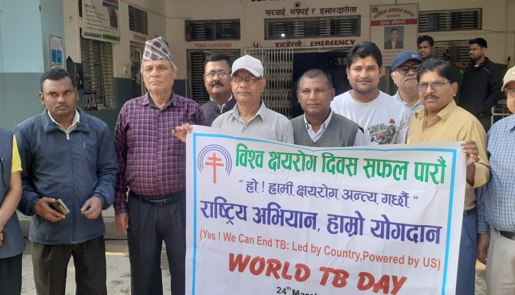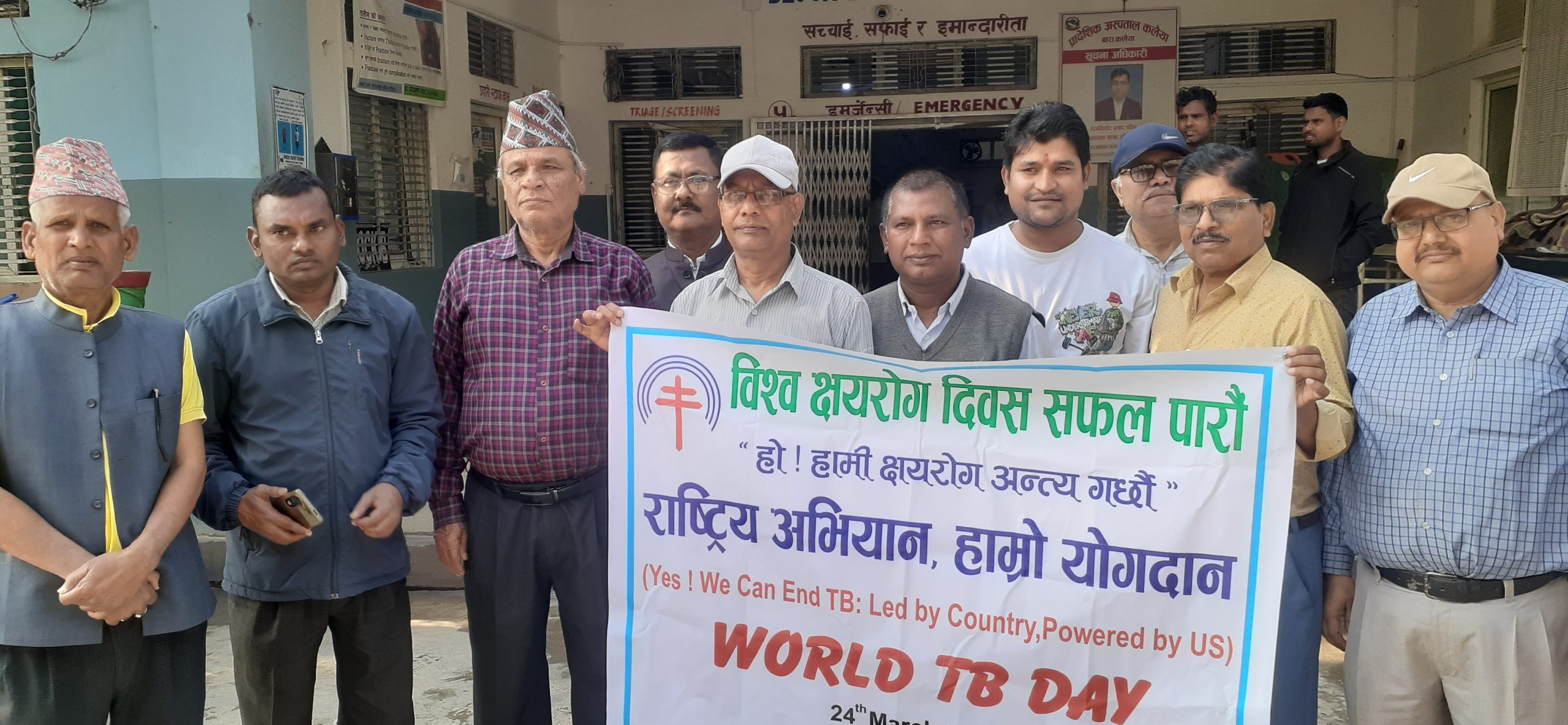 नेपाल क्षयरोग निवारण संस्था बारा द्वारा विश्व क्षयरोग दिवस को अवसरमा कलैया प्रादेशिक अस्पतालमा फलफूल वितरण कार्यक्रम सम्पन्न गरिएको छ। कार्यक्रमले क्षयरोगी बिरामीहरूको मनोबल बढाउने तथा स्वास्थ्य सुधारतर्फ सकारात्मक सन्देश दिने उद्देश्य राखेको थियो।